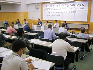 JAC organized the 2nd Autocamping Symposium with the theme "Autocampingsites in the 21st Century--Launching an Autocamping Renaissance at Campsites--," to which managers of Japan's three most popular campsites were invited as panelists in order to confirm the realities and issues faced by campsites in Japan and discuss the possibility of development of autocamping in the 21st century.