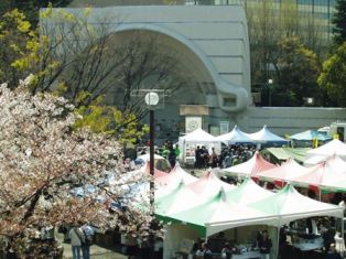 The event "Outdoor 2006", organized by Japan Auto Camping Federation, was held at Tokyo's Yoyogi Park Event Square on April 8 and 9, 2006. With cherry blossoms at bloom, the exhibition booths displayed camping products of Japan's most renowned outdoor manufacturers as well as camping cars and information on campsites. The event also included fun programs such as a log cutting competition, apple peeling contest, and cooking class. Visitors also enjoyed a dynamic Japanese drum concert and a joint performance of six sets of drum on the outdoor stage. In the "Camp Village," built within the event site, the camp instructors entertained guests with stone painting, nail art, apple baking, acorn craft, and so on.