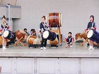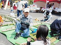 The event "Outdoor 2009", organized by Japan Auto Camping Federation, was held at Tokyo's Yoyogi Park Event Square on April 11 and 12, 2009. With cherry blossoms in full bloom and blessed with fine weather,the event attracted about a hundred thousand visitors. The exhibition booths displayed camping products of Japan's most renowned outdoor manufacturers as well as camping cars and information on campsites. Visitors also enjoyed a dynamic Japanese drum concert performed by a woman team and a performance of junior high school brass band on the outdoor stage. In the "Camp Village," built within the event site, the camp instructors entertained guests with smoked meat, bamboo craft, mini ping-pong, and so on.