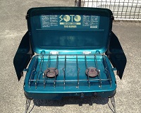 | 家庭用のカセットボンベが使用でき、家庭用の鍋やフライパンでも不便なく調理できるので、これ1台でファミリーキャンプの火を使う料理はOK! 状態:左側の点火火花が弱くなっているので、チャッカマンなどで補助する必要があります。 所有者コメント:キャンプをはじめた時から今まで、毎回のキャンプで使っている道具です。最近は子供が大きくなり、単身でのキャンプが中心になっているので、出品することにしました。何かとツールの購入が必要な初心者ファミリーキャンパーの方におすすめします。 | |||||