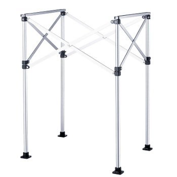●商品名:デラックスハイスタンド596-700J ●寸法: 約52×46×71cm(使用時) 約6×7.5×71cm(収納時) ●材質:フレーム/アルミニウム、ジョイント/ABS樹脂 ●重量: 約1,500g 支持バー上面にすべり止め付、脱落防止フック付、足元にペグを打ち込むことができ、より安定したセッティングが可能です。 | |||||