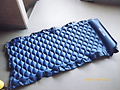 | ● 購入年:2005年 ● 特徴:効率的な形状でマットが大きいのに空気を比較的楽に入れられます。(電気式の空気入れがあるとすぐにいっぱいになります。) ● 一人用のマットが2枚組。(収納時の長さ50cmほど。2枚をマジックテープでダブルにセットもできます。) ● 堅い地面のサイトでも、やさしく睡眠をサポートしてくれます。 ● がさばる1000円の銀マット2枚よりは断然お得&コンパクト! | |||||