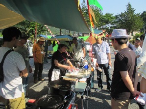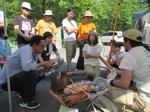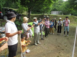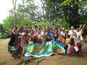今年も5月に引き続いて第2弾「みんなのキャンプ教室 in 山梨」を6月10/11日山梨県の黒坂オートキャンプ場で実施しました。5月のケニーズ・ファミリー・ビレッジが川沿いの開放的なキャンプ場なのに対し、こちらは雑木林に囲まれた自然の恵みいっぱいのキャンプ場です。指導員と受講者の家族合わせて40人が集まり、1泊2日のキャン教室を楽しく過ごしました。日曜日はキャンプ場の石釜で各家族がピザを作って食べました。子供たちはキャンプ場内を流れる小川で沢蟹を見つけて大喜び。最後の振り返りでは、「キャンプはずっとあこがれていたけれど大きなハードルを越えた気がする。これから家族で楽しみたいた」、「自然の中でたくさん深呼吸できました」、「子どもの顔が今までに見ことがないほど輝いているのを見て感動した」などの感想が寄せられました。最後に全員で記念写真を撮りました。