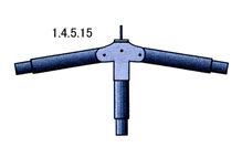 Sloping pole between two horizontal poles, as well at their end as at other places