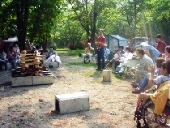 6月9日、第2回ユニバーサルキャンプ大会の2日目、青空の下でキャンプフォーラムを持ちました。参加者約20人がファイヤーサークルを囲んで座り、最初に大阪から参加した名倉泰代さんが基調報告を行った後、一人一人が大会の感想や意見を述べました。