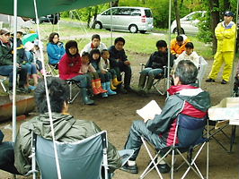 第7回ユニバーサルキャンプ大会の会場で参加者がビッグタープの下に集まりキャンプフォーラムを持ちました。2001年に第1回ユニバーサルキャンプ大会を開催して以来その波及効果は目覚しく、いまではいろいろな団体が「ユニバーサルキャンプ」を唱えるようになりました。そこでこの機会に改めて「ユニバーサルキャンプ」の誕生の経緯を振り返りました。