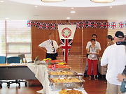 ジャパンパーティーでは日本から持っていった酒やつまみ類に、現地の食材で作った料理を加えて、各国の代表をもてなしました。アトラクションとして中川友太君(14歳)がテコンドーを披露、FICC会長が指に挟んだタバコを一瞬にして蹴落としました。