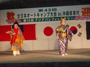 第16 回アジア・パシフィック大会(第43回全日本オートキャンプ大会)が10月12日(金)から14日(月)まで沖縄県の東村「東村村民の森つつじエコパーク」で開催されました(主催:日本オートキャンプ協会、共催:東村・東村ふるさと振興)。海外から90名、国内は本州からフェリーで渡ってきたキャンパーを含め152名が参加。参加者は心地よい秋の沖縄で前夜祭、開会式、周辺観光地を巡るツアー、そして沖縄の伝統芸能や郷土料理を楽しみました。