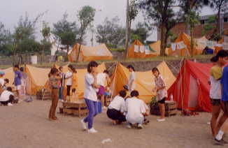 1999年9月21日、大地震が台湾を襲い、2685名の死者と無数の負傷者を出しました。40万人以上が住宅を失いましたが、1週間以内に約10万セット以上のテントが被災者に提供され、仮設住宅が立てられるまでの宿泊施設となりました。これは過去50年間学校で実施されてきた「童軍教育」の成果でした。一般国民が学校で習得した野外生活の技能と、普段から学校に備えてあるキャンプ器材が役に立ったのです。地震のため10月8日から12日まで台湾で予定されていた第5回アジア・パシフィック大会は中止されました。